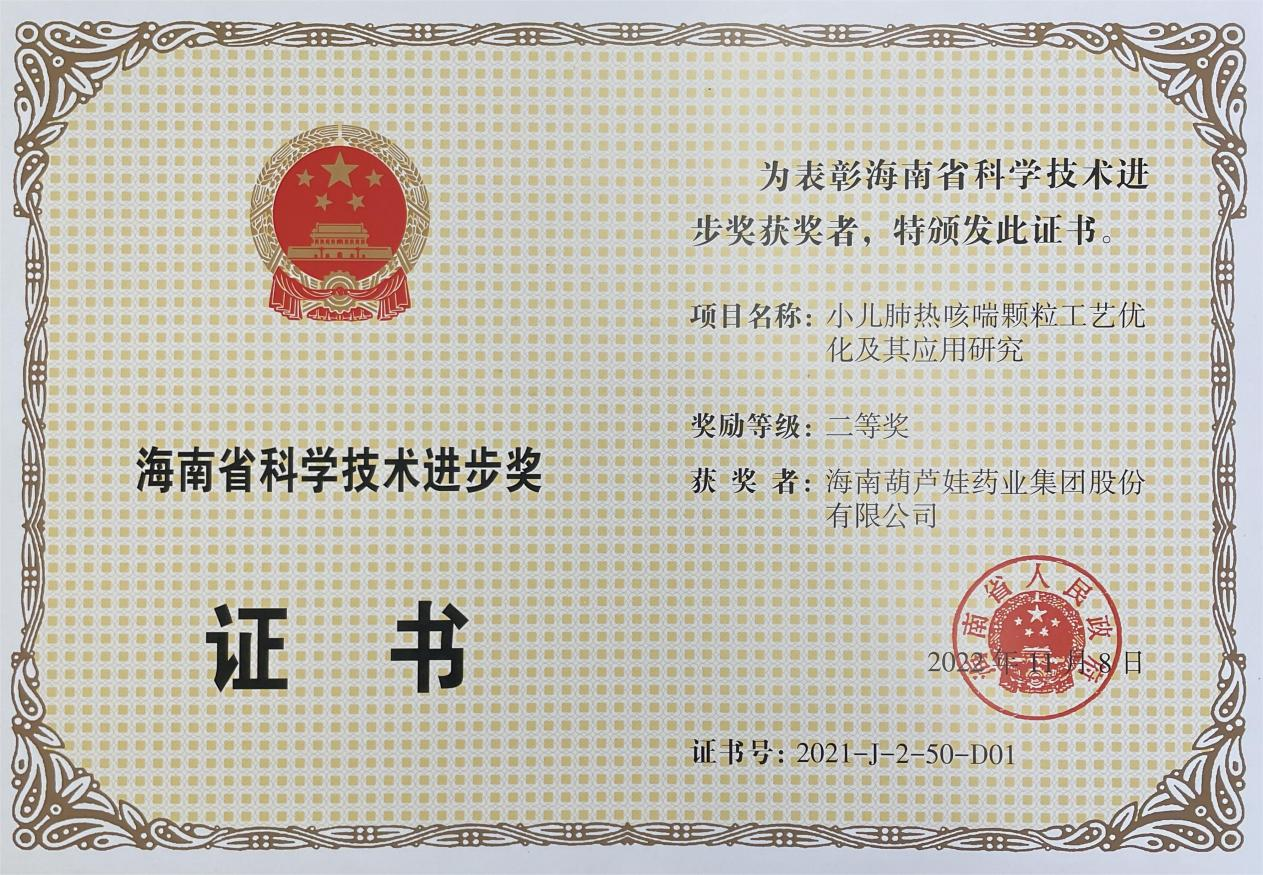 为此,小儿肺热咳喘颗粒的制备方法获得了第二十一届中国专利优秀奖(2019年),专利申请号:ZL201010134951,此次作为专利技术的应用,获得了2021年度海南省科学技术进步奖二等奖。在此之前,d88尊龙z6牌小儿肺热咳喘颗粒还多次被授予“临床价值中成药品牌”、“中国连锁药店最具合作价值单品”,荣登“中国医药品牌榜”。